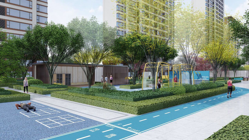 享/頤養(yǎng)樾心——在靜水臺(tái)東側(cè)是融樂(lè)同享,為老人打造的多功能趣味性運(yùn)動(dòng)場(chǎng)所。