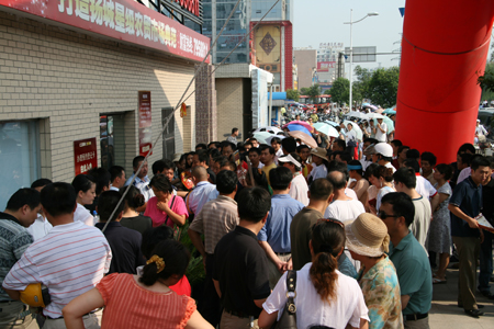 雖然盛夏初至,但高溫難抵市民的投資熱情。7月18日,新能源.金茂廣場(chǎng)之蘭苑農(nóng)貿(mào)市場(chǎng)預(yù)約登記第一天,就有300多戶客戶蜂擁而至,再度掀起西區(qū)房產(chǎn)投資熱潮。