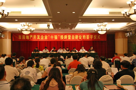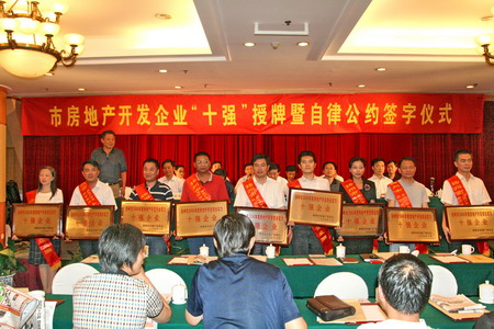 2006年度揚(yáng)州房地產(chǎn)開發(fā)綜合實(shí)力十強(qiáng)企業(yè)新鮮出爐;。江蘇新能源置業(yè)集團(tuán)有限公司再度榮獲十強(qiáng)之一。集團(tuán)公司張有龍總監(jiān)出席了頒獎儀式,并參加了揚(yáng)州房地產(chǎn)開發(fā)綜合實(shí)力自律公約的簽約活動。