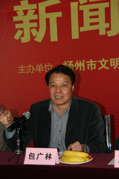 圖為揚(yáng)州市委宣傳部副部長、文明辦主任王曉慶作重要講話