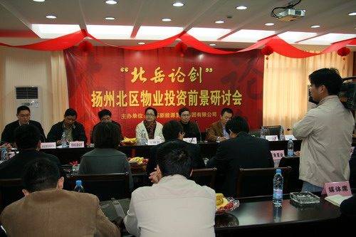 4月11日,由江蘇新能源置業(yè)集團(tuán)有限公司舉辦的揚州北區(qū)物業(yè)投資前景研討會; 在公元國際大廈會議室隆重召開。江揚工業(yè)園管委會、維揚區(qū)建設(shè)局、維揚區(qū)規(guī)劃局、維揚區(qū)商貿(mào)局領(lǐng)導(dǎo),揚州大學(xué)房地產(chǎn)研究所、東南大學(xué)房地產(chǎn)研究所、中國房地產(chǎn)策劃協(xié)會專家學(xué)者及江揚商貿(mào)城等北區(qū)相關(guān)在建項目負(fù)責(zé)人參加了此次會議。