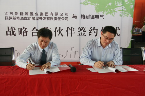 期間,江蘇新能源置業(yè)集團(tuán)有限公司、揚(yáng)州新能源虎豹房屋開(kāi)發(fā)有限公司和施耐德電器在房展會(huì)上簽署了戰(zhàn)略伙伴合作協(xié)議。這是新能源繼與三菱電梯結(jié)成戰(zhàn)略伙伴關(guān)系后的又一舉措。