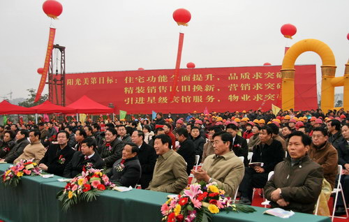 一段時間以來,受到全國房地產市場動蕩的影響,揚州開發(fā)商也有觀望現象,市區(qū)已近半年不聞房地產項目開工聲。陽光美第;昨日開工,屬于逆市而為;、 逆市而上;,因此有許多開發(fā)商同行到場助陣。