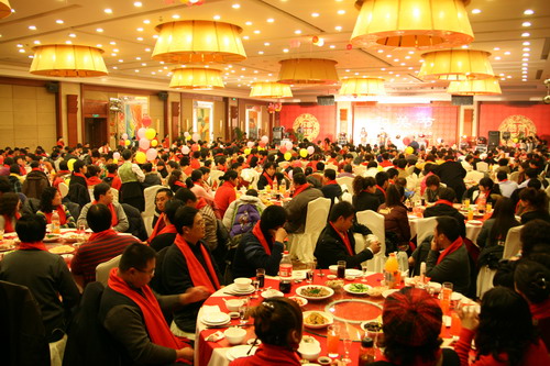 2009年1月21日下午5時(shí)30分,新能源集團(tuán)公司、泰興分公司、新能源虎豹公司和新能源物業(yè)公司的全體干部員工及其家屬,還有應(yīng)邀而來(lái)的嘉賓共約五百人,個(gè)個(gè)披著大紅色的羊絨圍巾走進(jìn)了富麗堂皇、流光溢彩的新世紀(jì)大酒店世紀(jì)廳,剎那間,大廳里一片生機(jī)盎然,充滿了青春似火的氣息,新能源第三屆和美節(jié);在這里隆重舉行。