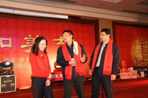 錦繡天邊掛,彩虹肩上披,引來(lái)吉祥鳥(niǎo),寒冬報(bào)春暉。;新能源虎豹公司顧載兵總裁宣讀的頒獎(jiǎng)辭不僅是對(duì)時(shí)裝秀的最好詮釋,而且是對(duì)新能源人迎接挑戰(zhàn),戰(zhàn)勝嚴(yán)冬心愿的最好表達(dá)。最后時(shí)裝秀、《開(kāi)心寶》、《卓瑪》、武術(shù)表演等四個(gè)節(jié)目分別獲得最佳風(fēng)韻獎(jiǎng)、最開(kāi)心獎(jiǎng)、最甜美歌聲獎(jiǎng)和最佳功夫獎(jiǎng)。 和美節(jié);為10家優(yōu)秀施工單位及供貨商代表頒了獎(jiǎng),還進(jìn)行了幸運(yùn)抽獎(jiǎng)活動(dòng)。2個(gè)小時(shí)的晚會(huì)始終洋溢著團(tuán)結(jié)、祥和、熱烈、歡樂(lè)的氣氛。
