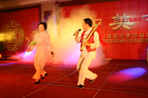 當(dāng)新能源集團(tuán)公司的四位美女和兩位帥哥表演的舞蹈《青花瓷》作為開(kāi)場(chǎng)節(jié)目表演時(shí),董事長(zhǎng)包廣林驚奇地問(wèn):這些演員難道是我們的員工嗎?;節(jié)目真是形式多樣,一個(gè)比一個(gè)精彩。表演戲曲串燒的男員工唱的是有板有眼,女員工唱的是韻味十足,令人回味無(wú)窮;音樂(lè)小品《工地情緣》更是新能源人將緊張的工作原汁原味地搬上舞臺(tái),展現(xiàn)了新能源人越是堅(jiān)難困苦,越發(fā)豪情滿懷的精神面貌。表演花鼓戲《劉??抽浴返膬晌粏T工熱情洋溢、十分投入;演唱《卓瑪》的劉總身著藏族服裝,將潔白的哈達(dá)獻(xiàn)給了現(xiàn)場(chǎng)的嘉賓。泰興分公司的《動(dòng)感單車》給人們留下了深刻的印象,五位身穿運(yùn)動(dòng)服的員工騎著動(dòng)感單車,時(shí)而左轉(zhuǎn),時(shí)而右轉(zhuǎn),時(shí)而爬坡,時(shí)而沖鋒,充分體現(xiàn)了我運(yùn)動(dòng),我健康,我快樂(lè);的新能源開(kāi)發(fā)理念;表演時(shí)裝秀《廣陵古韻》的新能源虎豹公司八位美麗的姑娘身著盛裝,腳踏貓步,婀娜多姿,面帶微笑,在她們的伴隨和引領(lǐng)下,公司的老總們也集體閃亮登場(chǎng)時(shí),全場(chǎng)響起了一片熱烈的掌聲。物業(yè)公司的女聲獨(dú)唱《誰(shuí)不說(shuō)俺家鄉(xiāng)好》和《風(fēng)含情水含笑》抒發(fā)了新能源人對(duì)家鄉(xiāng)的熱愛(ài)之情,武術(shù)表演則用男性特有的陽(yáng)剛之氣表達(dá)了新能源物業(yè)人為業(yè)主保衛(wèi)家園的勇氣和本領(lǐng)。充滿青春活力的舞蹈《青春勁舞》和表現(xiàn)異國(guó)情調(diào)的爵士舞熱情奔放,小合唱《北京歡迎你》和燭光舞《平安夜》親切甜美,使人賞心悅目。如果說(shuō)男生群舞《開(kāi)心寶》讓人的神經(jīng)高度興奮,使人開(kāi)懷大笑的話,男女對(duì)唱《美麗的神話》則充分表達(dá)了新城市花園樓盤在泰興獨(dú)領(lǐng)風(fēng)騷的原因,那就是新能源堅(jiān)定不移地走品牌之路,創(chuàng)精品工程的結(jié)果。