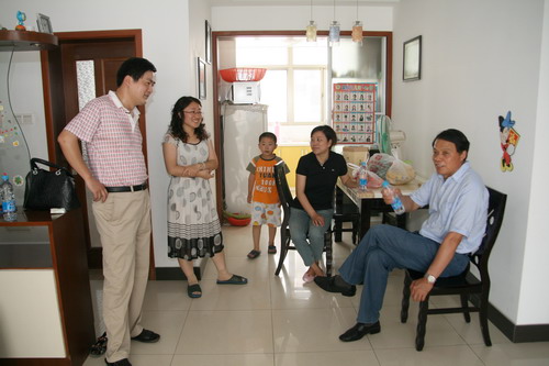 2009年6月21日上午,新能源集團(tuán)公司董事長(zhǎng)包廣林和新能源虎豹公司總裁顧載兵及相關(guān)老總,冒著酷暑,分別到獲得本次誠(chéng)實(shí)做人、誠(chéng)信做事;優(yōu)秀員工的4名干部家中進(jìn)行慰問。董事長(zhǎng)包廣林對(duì)他們的家人說:他們?cè)谛履茉慈〉玫某煽?jī),首先要感謝你們作為大后方的家庭給予的支持和理解。新能源之所以能有今天的成績(jī),就是因?yàn)橛形覀冞@樣的優(yōu)秀的干部員工,新能源的未來會(huì)更加美好。