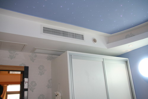 在陽(yáng)光美第的樣板房?jī)?nèi),我們?cè)诟鱾€(gè)房間來(lái)回走動(dòng),感受到溫度非常平衡,人也感到非常舒適。室溫穩(wěn)定在18-20℃,據(jù)工作人員介紹,這樣的溫度一方面可以節(jié)約能源,減少電力損耗,一方面可以降低室內(nèi)外溫差,在保證舒適度的前提下盡可能避免由于內(nèi)外溫差過(guò)大可能給人體帶來(lái)的不良影響。在每套住宅的各個(gè)房間內(nèi)都有出風(fēng)口、回風(fēng)口,相當(dāng)于各個(gè)房間都安裝了獨(dú)立空調(diào),溫度可以根據(jù)自己需要自行調(diào)節(jié),不使用時(shí)也可以關(guān)閉,非常方便。出風(fēng)口、回風(fēng)口隱藏在天花板上,不占空間、不礙視線,如果不出門(mén),渾然不知窗外已是白雪紛飛的冬日。真有桃花源中不知有漢、無(wú)論魏晉;的意趣呢!