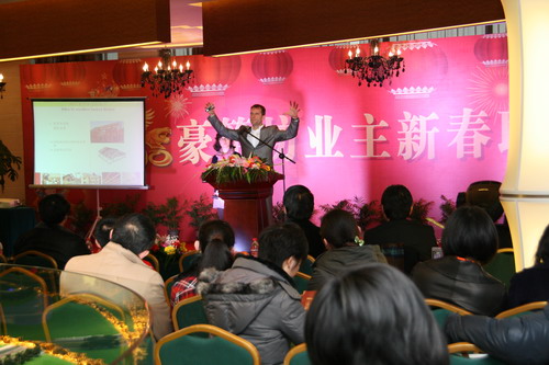 2月6日下午,以五星級標(biāo)準(zhǔn)打造的豪第坊會所里到處洋溢著歡聲笑語,100多名項目業(yè)主跟建設(shè)者們在此舉行新春聯(lián)誼會,新能源虎豹公司董事長包廣林和總裁顧載兵分別做了精彩的歡迎辭。