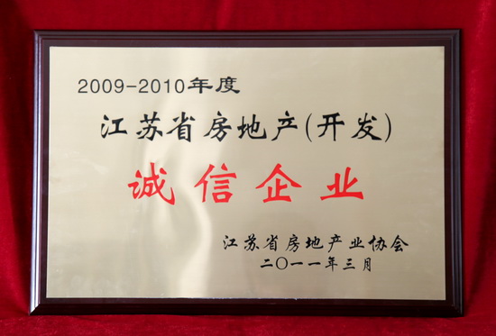 2011年4月19日,由江蘇省房地產(chǎn)協(xié)會(huì)牽頭組織的2009-2010年度江蘇省房地產(chǎn)開發(fā)誠信企業(yè)表彰大會(huì)在南京舉行。江蘇新能源置業(yè)集團(tuán)有限公司獲得江蘇省房地產(chǎn)(開發(fā))誠信企業(yè);稱號(hào)。