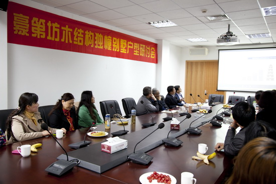 4月12日,20多位準(zhǔn)業(yè)主齊聚豪第坊,與設(shè)計專家和建設(shè)方老總共同研討第三期木結(jié)構(gòu)獨棟別墅的戶型升級。