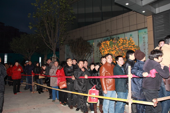 2013年11月12日,新能源水木清華二期最后一批房源11、18、19棟傾情巨獻。一襲水木,一宅湖光,12000㎡中央湖景,禮獻泰興。開盤前夜,室外溫度僅9℃,從凌晨一點起,便有客戶前來排隊,徹夜等待,只為早點簽約到心中的好房,現(xiàn)場人氣十分火爆,第一天就成功簽約130余套。