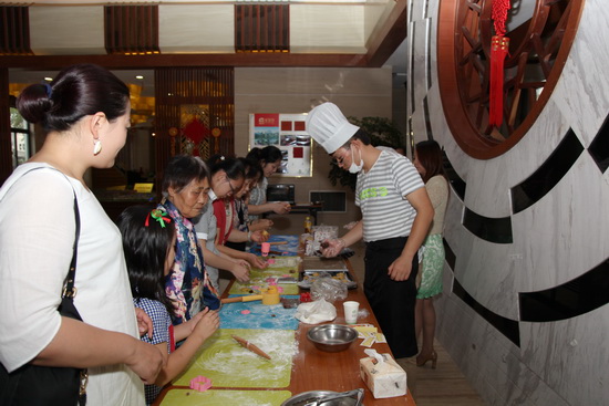 售樓中心里,一群孩子們和自己的父母或者爺爺奶奶一起在做月餅,盡管手忙腳亂,卻也不亦樂乎。也有一些來賓就這樣靜靜的站在橋頭,或者坐在亭子里,一邊閑聊,一邊看著眼前的風(fēng)景。有的還騎上雙人自行車沿著豪第坊的道路一路前行,倒也是逍遙自在。