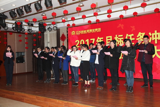 2017年3月10日下午,江蘇新能源置業(yè)集團在豪第坊召開2017年目標任務(wù)沖刺暨新春培訓班動員大會,動員全體干部員工進一步振奮精神,昂揚斗志,乘勢而上,全力沖刺,確保全面完成2017年全年目標任務(wù)。
