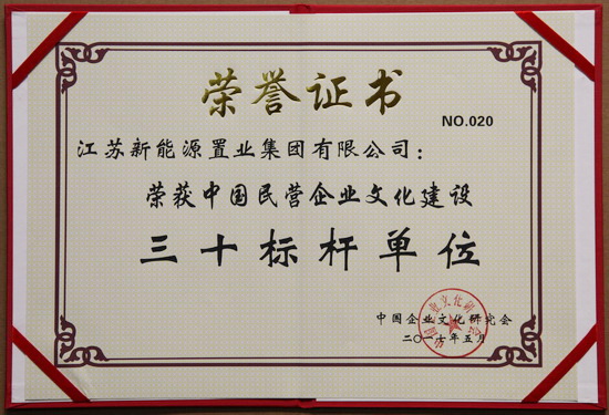 會(huì)上,中國(guó)企業(yè)文化研究會(huì)授予江蘇新能源置業(yè)集團(tuán)中國(guó)民營(yíng)企業(yè)文化建設(shè)三十標(biāo)桿單位;榮譽(yù)稱號(hào)。