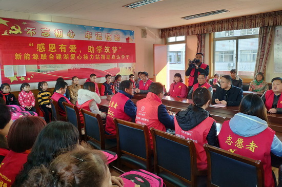 另據(jù)報道,11月22日下午,新能源置業(yè)集團聯(lián)合建湖愛心接力站走進縣實驗小學森達校區(qū),向10名優(yōu)秀貧困學生每人贈送了300元現(xiàn)金以及書包、文具盒、作業(yè)本等學習用品。