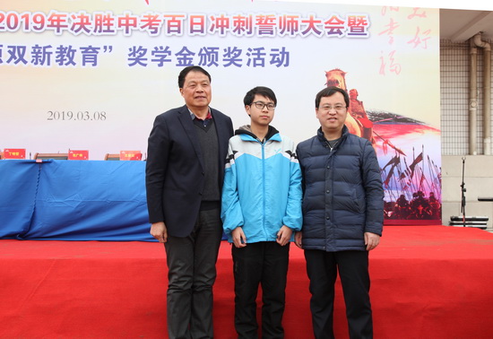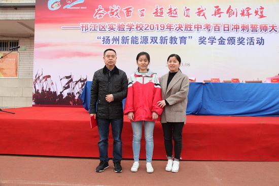 首先,邗江區(qū)實(shí)驗(yàn)學(xué)校九年級(jí)全體同學(xué)進(jìn)行奮戰(zhàn)百日、超越自我、再創(chuàng)輝煌;決勝中考宣誓。接著,活動(dòng)現(xiàn)場(chǎng)舉行聘請(qǐng)人生導(dǎo)師儀式,一批學(xué)生和家長(zhǎng)向人生導(dǎo)師頒發(fā)聘書。在歡快熱烈的氣氛中,一批品學(xué)兼優(yōu)的初三學(xué)生登臺(tái)領(lǐng)取新能源雙新教育獎(jiǎng)學(xué)金;,有50名學(xué)生獲得一等獎(jiǎng),每人獎(jiǎng)金500元;有130名學(xué)生獲得二等獎(jiǎng),每人獎(jiǎng)金300元;有320名學(xué)生獲得三等獎(jiǎng),每人獎(jiǎng)金100元。本次共發(fā)獎(jiǎng)學(xué)金96000元。