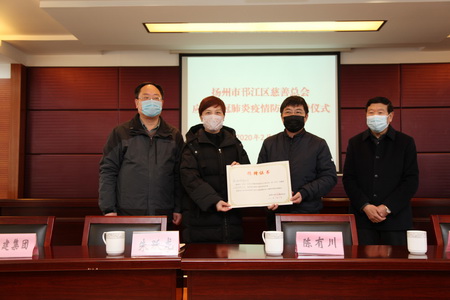 眾志成城抗疫情,同舟共濟(jì)渡難關(guān)。;2月7日上午,邗江區(qū)慈善總會的會議室洋溢著濃濃的暖流,來自邗江區(qū)的部分企業(yè)為抗擊疫情的捐贈(zèng)儀式在這里舉行。