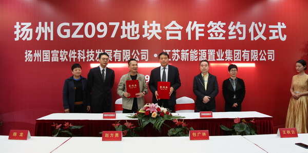 3月15日上午,江蘇新能源置業(yè)集團有限公司與揚州國富軟件科技發(fā)展有限公司舉行GZ097項目簽約儀式,新能源置業(yè)集團董事長包廣林、總裁王秋云,國富科技董事長趙方勇、總監(jiān)陳龍等出席。