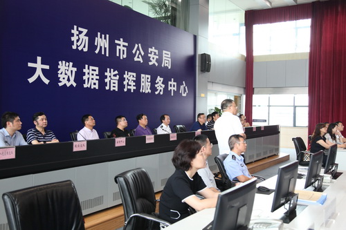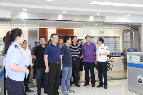 活動首先進行參觀,在市公安局劉毅副局長及相關負責人陪同下,大家走進市公安局民意訪評中心聽取情況介紹;然后乘車前往東關街實地察看二維碼門牌和人臉識別系統(tǒng);接著又來到市公安局大數(shù)據(jù)指揮中心了解城市管理情況。