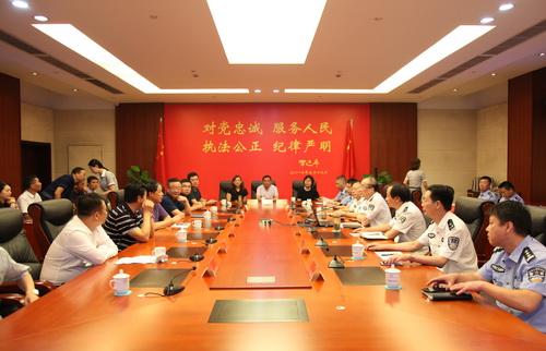 參觀結(jié)束后交流座談,副市長、市公安局局長宮文飛向大家介紹了全市公安工作及城市治理情況,著重介紹這些年公安工作從人民群眾滿意的事情做起,從人民群眾不滿意的問題改起,揚州社會治安工作得到市委市政府的充分肯定和全市人民的充分認可,揚州人民幸福度、滿意度不斷提升。揚州市房地產(chǎn)商會會長包廣林在講話中,感謝公安干警為基層服務到位,為企業(yè)排憂解難,為市民創(chuàng)造平安。