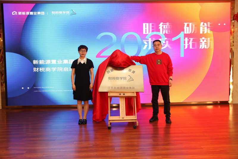 在熱烈的掌聲中,總裁王秋云和院長丁璟瑤共同為“財(cái)稅商學(xué)院”揭牌。