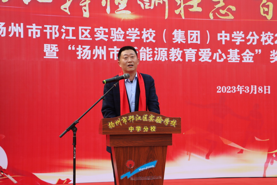 3月8日,“新能源教育愛心基金”2022-2023 學(xué)年度頒獎(jiǎng)儀式在邗江區(qū)實(shí)驗(yàn)學(xué)校舉行,江蘇新能源置業(yè)集團(tuán)總裁王秋云、邗江區(qū)教育局副局長(zhǎng)、邗江區(qū)實(shí)驗(yàn)學(xué)校校長(zhǎng)葛光等領(lǐng)導(dǎo)參加活動(dòng)。