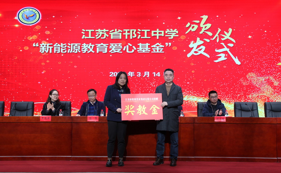 3月14日,“新能源教育愛心基金”頒獎(jiǎng)儀式分別在江蘇省邗江中學(xué)和維揚(yáng)中學(xué)舉行,邗江中學(xué)高三畢業(yè)班學(xué)生和維揚(yáng)中學(xué)初中畢業(yè)班學(xué)生參加了活動(dòng)。